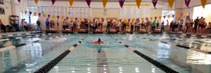 I get the hint and we change the subject to safer things, like kids. On Saturday Gabe had a swim meet. Can I tell you how much I love to watch him swim? He’s a monster. He swam the 200 freestyle and 100 Fly, as well as both A relays.