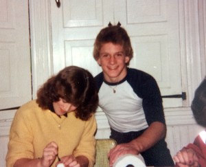 When shutting off Mr. Komenski’s electric became blasé, Tony and I moved on to other pursuits, one of which was finding “dates” for each other. I found the lovely Janet for him, and Tony remembered I’d somehow hypnotized Bobby at the Christmas concert. Tony’s mom drove the four of us to the mall for the afternoon. This is how I met my husband: all nerves and angst and…and we were crushed in the backseat of a wee little car. I remember that.